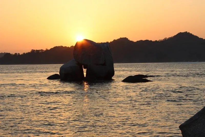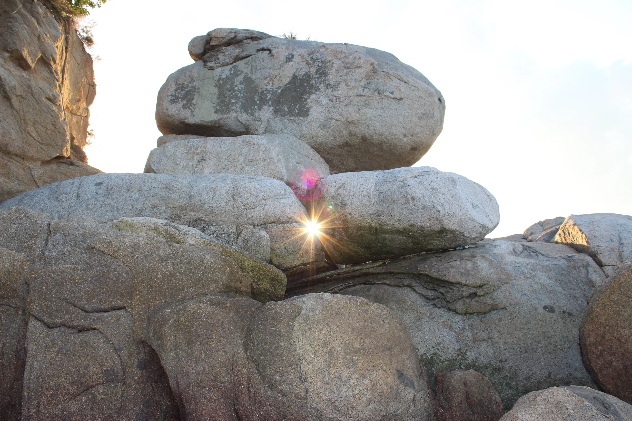 瀬戸内海に面した岬の先端に鎮座する白石龍神社の目の前に、花崗岩の巨石が絶妙なバランスで積み重なった「三ツ石」と「亀石」が現れた瞬間、思わず息をのみました。